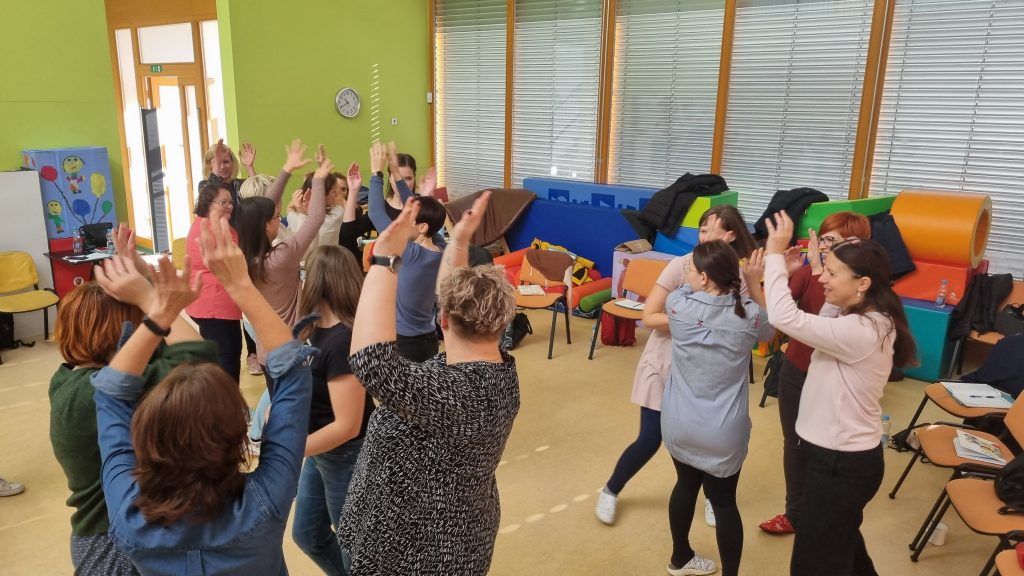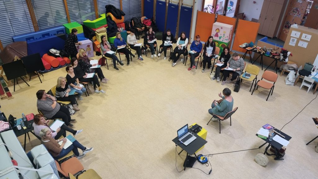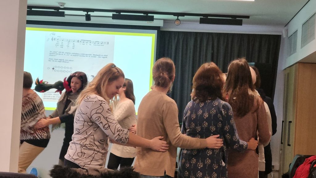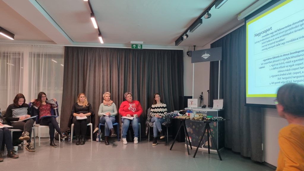 A képzés a kisgyermekek zenei fejlődéséről, lehetséges neveléséről szólt, nagy hangsúlyt kaptak a ritmusgyakorlatok, a magyar népdalkincs, a különböző hangszerek használatának lehetőségei. Olyan tanácsot is kaptak a résztvevők, hogy milyen zenét érdemes a gyerekekkel hallgatni, vagy milyen körjátékokkal fejleszthető a figyelem és a zenei érzék. A jó hangulatú és gazdag gyakorlati tudást nyújtó továbbképzésen 15 óvónő és 5 osztálytanító vett részt.